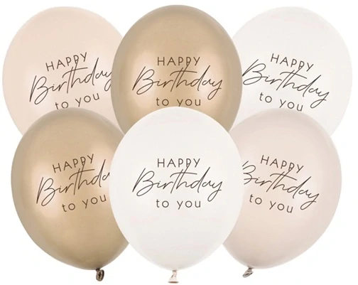 BAL 91 - Balonky Happy Birthday – béžový mix, 6 ks / 30 cm